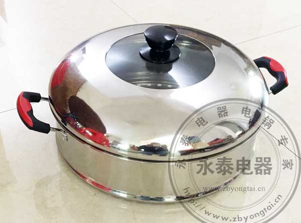 言歸正傳,開(kāi)箱,打開(kāi)包裝拿出期盼已久的真不銹電熱鍋,黝黑的鍋身,配不銹鋼蒸籠鍋蓋,很漂亮。