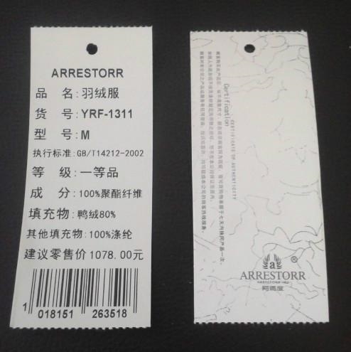 方案三:印刷好服裝吊牌的固定內(nèi)容,然后利用我們的服裝吊牌打印機(jī),打印變化的內(nèi)容在服裝吊牌上。